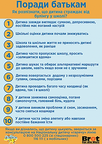 У випадку шкільного булінгу за кривдника, якому не ще не виповнилося 14 років, усю відповідальність несуть батьки. Вони повинні відшкодувати шкоду (як матеріальну, так і моральну), яку завдала їхня дитина іншому учню.