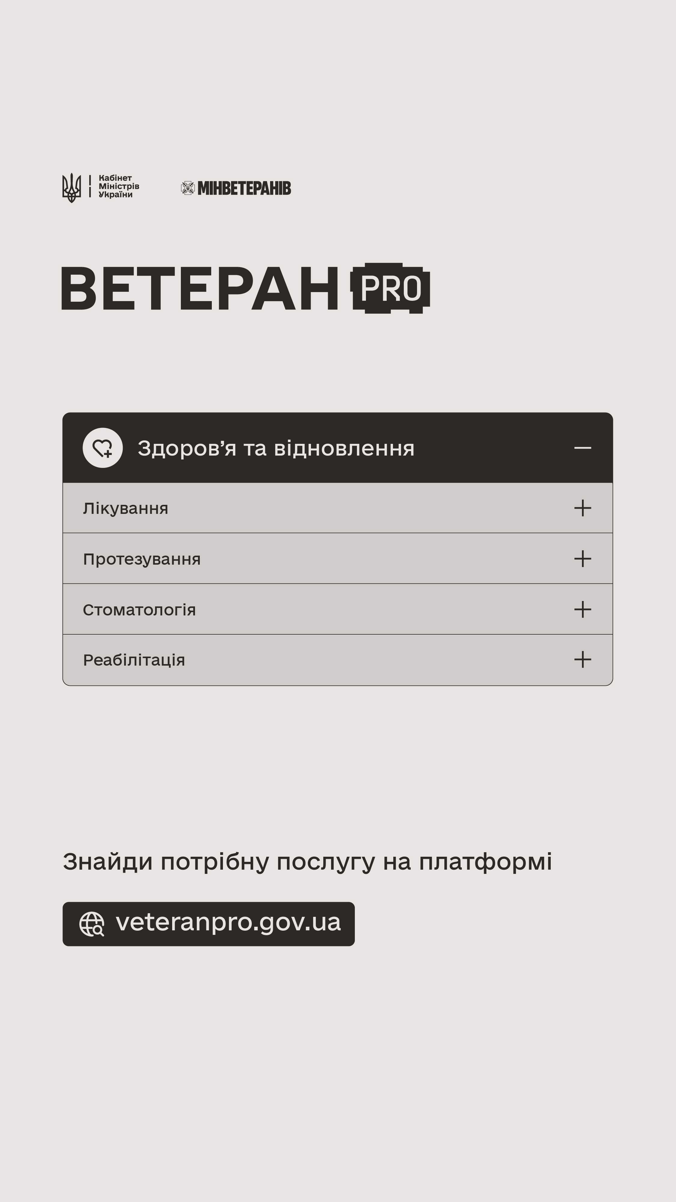 Інформація про більше послуг,покрокові інструкції та сервіси — на платформі ВетеранPRO: